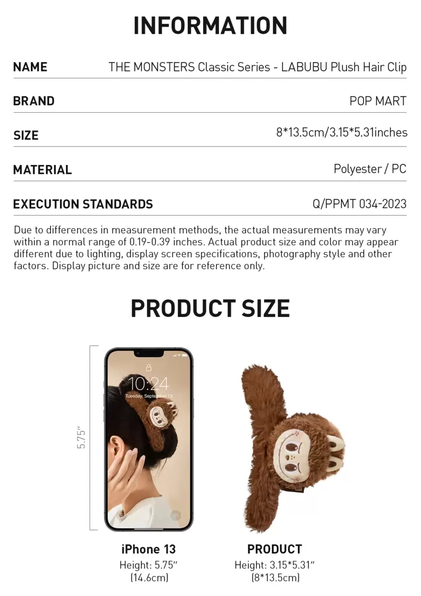 THE MONSTERS Classic Series- LABUBU Plush Hair Clip
